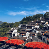 立秋一到,篁岭古村就成了一个天地晒场。来晒秋人家赏红枫,欣赏屋顶晒秋,枫林尽染,体验民风民俗,手摇风车、套南瓜等,感受晒秋人家的乡愁韵味。