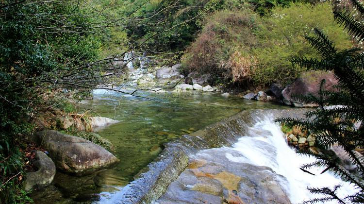 平渡堰漂流码头也在这附近,可以坐上竹筏一路漂流回入口附近的西关大桥。而如果由东关大桥走到对岸,你会发现有一条游步道通向山上。这边游人非常少,山上有不少古树,尽可以享受大自然的清静。往山下看,是永川河碧绿的河水,和水面上点缀着的竹筏,对面青瓦白墙的古村落也尽收眼底。这样一路走下山便也回到入口了,而且不用走回头路。