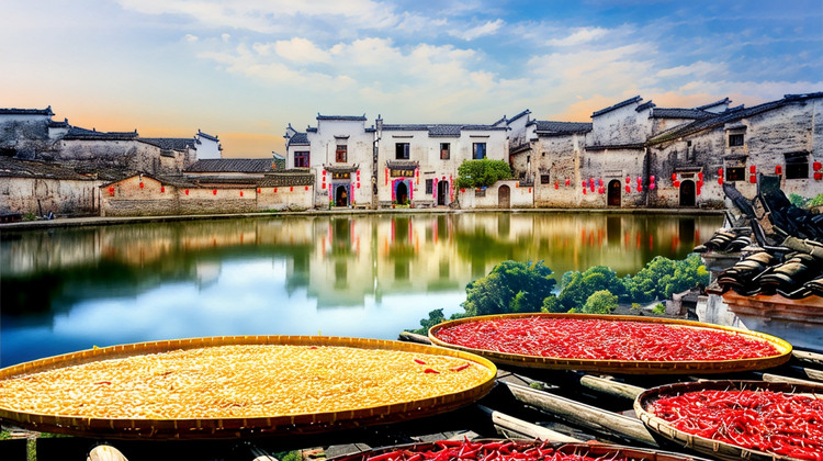 ◆抵达“桃花源里人家”黟县—【宏村景区】。这座被列入世界遗产的徽州古村落,以“牛形水系”闻名遐迩,南湖倒影如宣纸铺展,月沼青石晕染着八百年时光。马头墙镌刻明清商帮传奇,承志堂木雕藏着匠心跳动。春有菜花漫野,秋见红柿垂檐,写生者的笔尖与游人的镜头,共同定格这幅活着的山水长卷。
