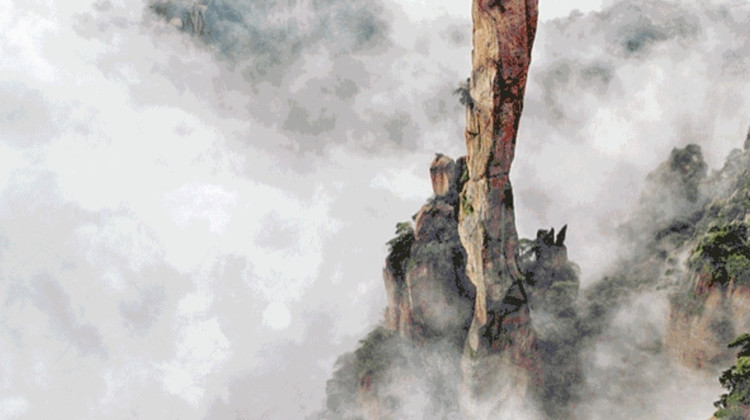 巨蟒出山是一座象形石柱,经大自然长期的风化与重力作用而形成,峰壁峭立,顶部稍平,颈部略细,就像一条破山而出的巨蟒,可谓是大自然的鬼斧神工。它与东方女神观遥遥相对,从金沙索道(东部索道)上山后到南清园景区游玩途中便可欣赏到。