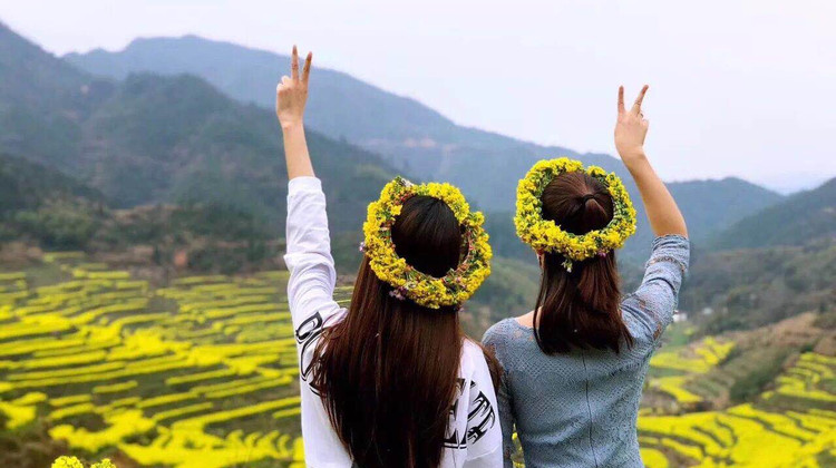 阳春三月,婺源篁岭景区数万亩层层叠叠的梯田上油菜花盛开,粉红的桃花、雪白的梨花点缀其中,是一副优美的水墨油画,在这里,你可以与大自然融为一体,与花海亲密接触。