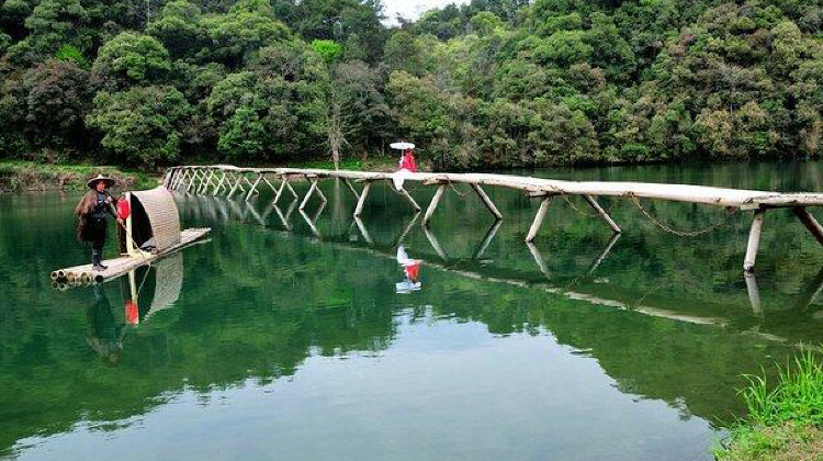 平渡堰漂流码头也在这附近,可以坐上竹筏一路漂流回入口附近的西关大桥。而如果由东关大桥走到对岸,你会发现有一条游步道通向山上。这边游人非常少,山上有不少古树,尽可以享受大自然的清静。往山下看,是永川河碧绿的河水,和水面上点缀着的竹筏,对面青瓦白墙的古村落也尽收眼底。这样一路走下山便也回到入口了,而且不用走回头路。