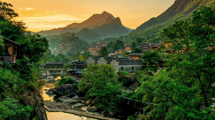 夜幕低垂,华灯初上,浪漫的气息笼罩着整个山谷,隐世悬崖之上的灯火阑珊,山林溪水相伴,享受仙谷夜色。
