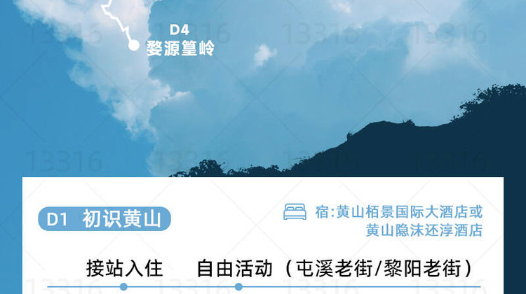 - :🏚️住的好才能玩的好,不打同等级擦边球,,提升旅行入住品质; 🏚️1晚宿黄山顶:1600米黄山山顶官方酒店双人标准间,景区核心位置,方便看日出日落; 🏚️黄山栢景国际大酒店:高品质住宿,位于黎阳老街商圈,步行可达,方便自由逛吃; 🏚️黄山昱城皇冠假日酒店:位于新安江畔,步行2分钟可达,安静舒适,环境优雅; 🏚️黄山隐沫还淳酒店:以新徽派为主,一巷五堂十三栋,马头墙白粉壁,高脊飞檐,曲径回廊;