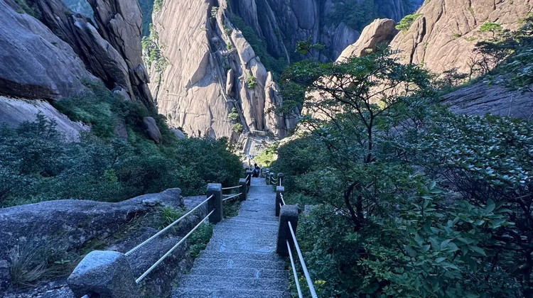 | 因黄山风景区山高,多台阶,登山以穿登山鞋、布鞋、球鞋为宜。皮鞋和塑料底鞋容易滑跌。为安全考虑,登山时可买一竹棍或手杖。不建议携带拉杆箱等大件行李登山,以双肩包为佳。大件行李建议寄存在山脚下,行李寄存费用需自理 |