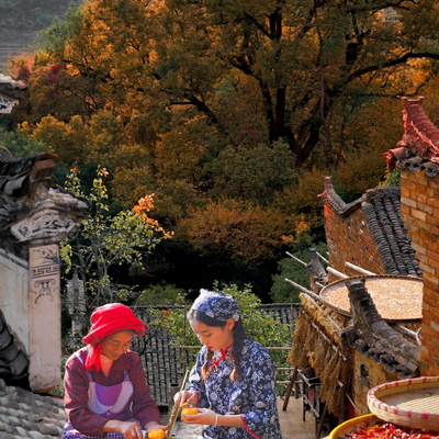 挂在山崖上的篁岭古村,地无三尺平,数百年来,村民早已习惯用平和的心态与崎岖的地形“交流”,绘就出了一处“晒秋人家”风情画。