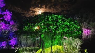 临江谜径全长760米,毗邻新安江,沿途通过光影技术与现实景观的融合,呈现动态、梦幻的美妙场景,包含有石上瀑、花仔小屋、石生花、幻光森林、石中语等,将带游客共赴一场来自魔法森林里的灯光盛宴。