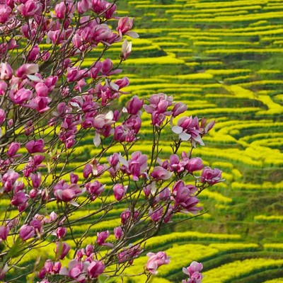春:阳春三月油菜花开,摄人心魂的是数万亩层层叠叠的梯田,是一副极美的水墨油画,与花海亲密接触,畅吮春天的芬芳。