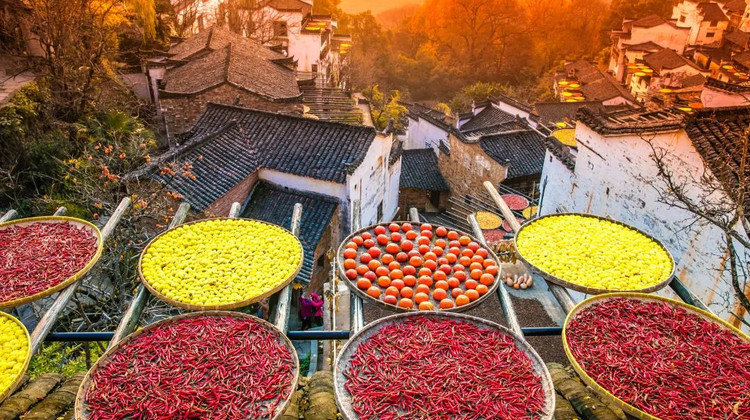 🚝抵达婺源,专车接站,前往篁岭.悬崖古村 ·花溪水街 /天街/晒秋坊【双程索道上下】,住篁岭度假区山野美宿