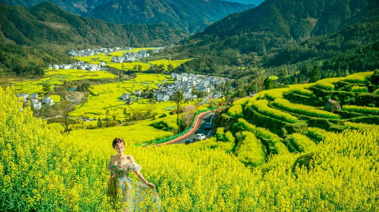阳春三月,婺源篁岭景区数万亩层层叠叠的梯田上油菜花盛开,粉红的桃花、雪白的梨花点缀其中,是一副优美的水墨油画,在这里,你可以与大自然融为一体,与花海亲密接触。