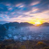 石城是一座山的称呼,在婺源县西北的古坦乡(现合并入大鄣山乡)境内,婺源旅游地图上叫石城山,山脚下就是灵岩国家森林公园。山上分布有两个村庄,分别叫程村与戴村。戴村与程村隔着一个小山坡,村后有古枫点缀,两个村庄的秋色各具特色,拍完石城的日出晨曦后可以到村里转转。