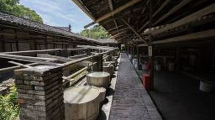 景德镇城东南十余里有一片老式农宅和陶瓷作坊,叫三宝国际陶艺村。整个村子看似普通的很旧的农家小院,进入门内是一个陶泥标志物,里面嵌了很多瓷片、陶艺作品,院子里有从外面引入的小溪,水清见底,躺着的瓷碗、瓷片,有的掩埋了一半在泥里,古老的木制农具和当地的日常用品静静地待在一边,原木的门上贴着的大红春联。原木的长凉亭,原木的农家的米桶是椅子。它随意、简单、毫无章法、却野趣天成。