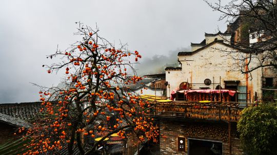 挂在山崖上的篁岭古村,地无三尺平,数百年来,村民早已习惯用平和的心态与崎岖的地形“交流”,绘就出了一处“晒秋人家”风情画。
