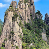巨蟒出山是一座象形石柱,经大自然长期的风化与重力作用而形成,峰壁峭立,顶部稍平,颈部略细,就像一条破山而出的巨蟒,可谓是大自然的鬼斧神工。它与东方女神观遥遥相对,从金沙索道(东部索道)上山后到南清园景区游玩途中便可欣赏到。