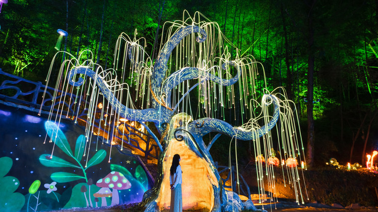 夏天来篁岭,开启一场奇妙夏夜之旅。一览古村夜景,感受篁岭的夕阳晚霞,万家灯火,随着舞动盘旋的百米长龙游走在乡间的路上,提一盏花灯漫步在古朴的街巷,感受魔幻森林的浪漫,在村口欣赏一场复古老电影,逛一逛乡村的纳凉集市。