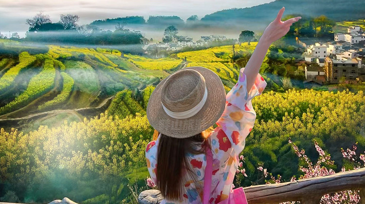 阳春三月,篁岭数万亩层层叠叠的梯田上油菜花盛开,粉红的桃花、雪白的梨花点缀其中,是一副优美的水墨油画,在这里,你可以与大自然融为一体,与花海亲密接触。