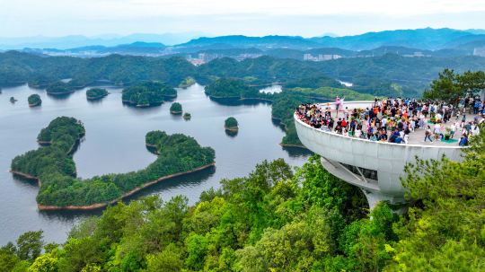 千岛湖景区更准确地讲是新安江水库,位于杭州淳安县,是新安江大坝截流后形成的人工湖。这里湖水清澈,湖面上岛屿星罗棋布,是江浙度假休闲的热门选择。千岛湖景区周边有十几处漂流点,夏日消暑不可错过。