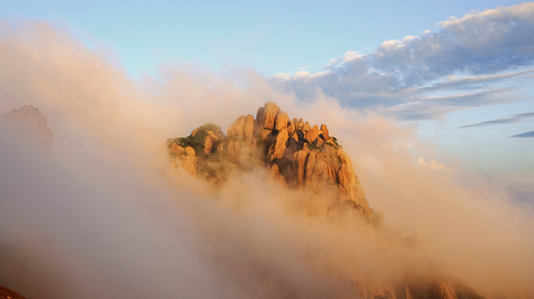 黄山北海景区位于黄山中部,坐落在光明顶、贡阳山、白鹅岭和始信峰之间,东连云谷景区,南接玉屏景区,西可至钓桥景区,北近松谷景区,是一片海拔在1600米左右的高山开阔区域,面积1316公顷。北海景区以峰为体,汇集了峰、石、坞、台、松、云奇景,天工的奇妙布局,琉璃色彩变幻,构成一幅幅伟、奇、幻、险的天然画卷,是黄山的风景窗。