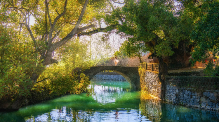平渡堰漂流码头也在这附近,可以坐上竹筏一路漂流回入口附近的西关大桥。而如果由东关大桥走到对岸,你会发现有一条游步道通向山上。这边游人非常少,山上有不少古树,尽可以享受大自然的清静。往山下看,是永川河碧绿的河水,和水面上点缀着的竹筏,对面青瓦白墙的古村落也尽收眼底。这样一路走下山便也回到入口了,而且不用走回头路。