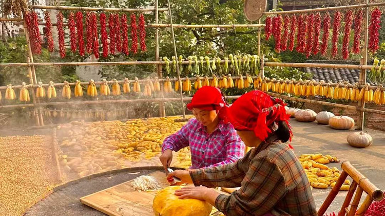 挂在山崖上的篁岭古村,地无三尺平,数百年来,村民早已习惯用平和的心态与崎岖的地形“交流”,绘就出了一处“晒秋人家”风情画。