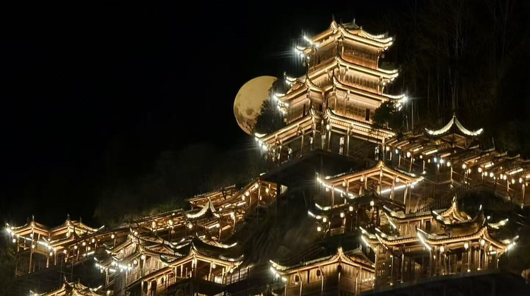 【夜景指南】晚上可以漫步于望仙谷景区内,打卡网红夜景!夜幕低垂,华灯初上,浪漫的着整个山谷,隐世悬崖之上的灯火阑珊,山林溪水相伴,享受仙谷夜色。