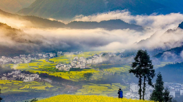 阳春三月,篁岭数万亩层层叠叠的梯田上油菜花盛开,粉红的桃花、雪白的梨花点缀其中,是一副优美的水墨油画,在这里,你可以与大自然融为一体,与花海亲密接触。