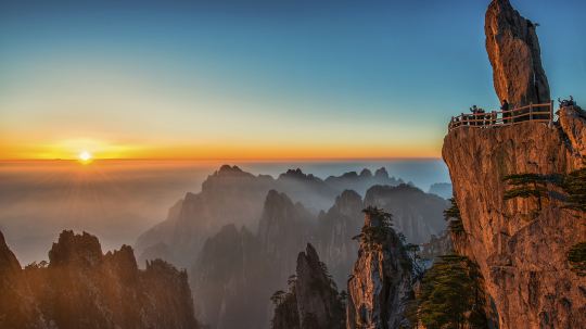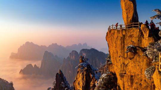 黄山风景区坐落于黄山市黄山区汤口镇境内。黄山自古以来就是中国数一数二的名山,奇松、怪石、云海、温泉被称为黄山的“四绝”。除此之外,雾凇、雪景、日出也是游人不会错过的景观,古人有“五岳归来不看山,黄山归来不看岳”的说法。