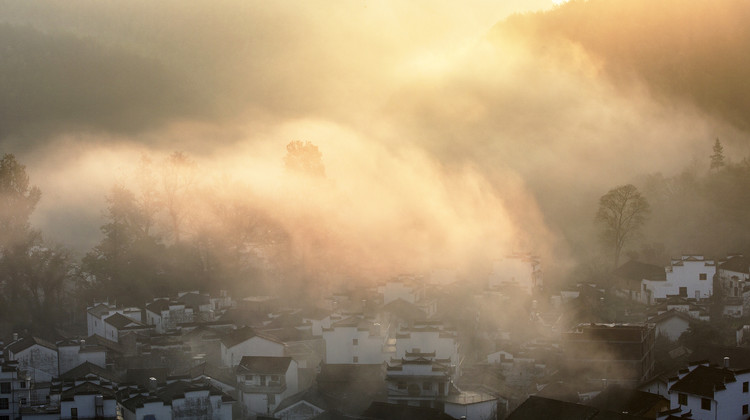 2. 推荐拍摄时间是在11月初到12月初,11月中下旬很是适宜。从一天当中来看,早晨的6点半到8点半是推荐拍摄时间。早晨到达的时候,晨雾还没有起来,只有一点点。太阳一般在7点到7点15分之间升起来,太阳出来以后,晨雾与炊烟就动起来了,也许就隔一到二分钟,同一个地点,就会有不同的画面效果。