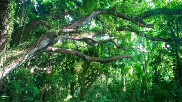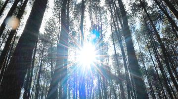 从黄龙寺沿石阶曲径上行约20分钟,便到芦林大桥。一路密林蔽日,树干高耸挺拔,夏日人行其间颇感凉爽。