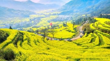 江岭地处婺源县东北,南临晓起,东接溪头。这里的油菜花田不是平地上的,而是层层叠叠的梯田风光,站在山顶的观景台上,十万亩油菜花梯田胜景尽收眼底,非常壮美,一般大家说的的婺源油菜花就是指这里。地址:上饶市婺源县婺源风景区内江岭村
