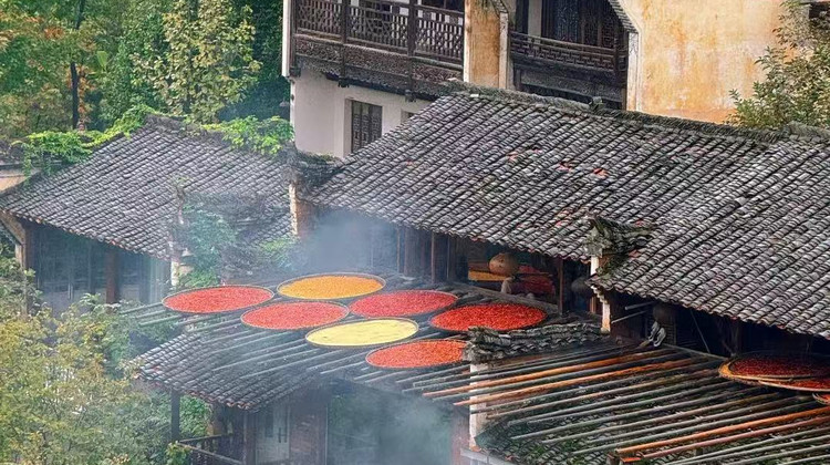 挂在山崖上的篁岭古村,地无三尺平,数百年来,村民早已习惯用平和的心态与崎岖的地形“交流”,绘就出了一处“晒秋人家”风情画。