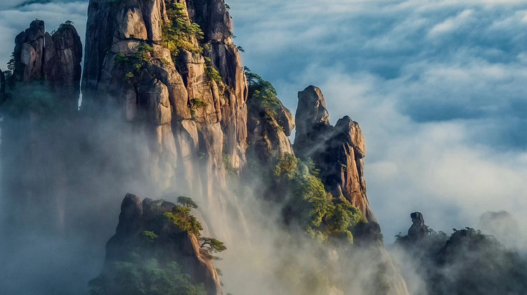 三清山风景区位于上饶市东北部,有“小黄山”之称,因三清山-玉京峰、玉虚、玉华峰三座山峰挺拔屹立,神似道教玉清、上清、太清三位尊神列坐在山巅之上而得名。这里是道教名山,景色也有几分仙气,能看漂亮的云海日出,欣赏山间惟妙惟肖的奇石,还能走上高空栈道赏景。