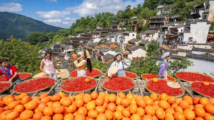 挂在山崖上的篁岭古村,地无三尺平,数百年来,村民早已习惯用平和的心态与崎岖的地形“交流”,绘就出了一处“晒秋人家”风情画。