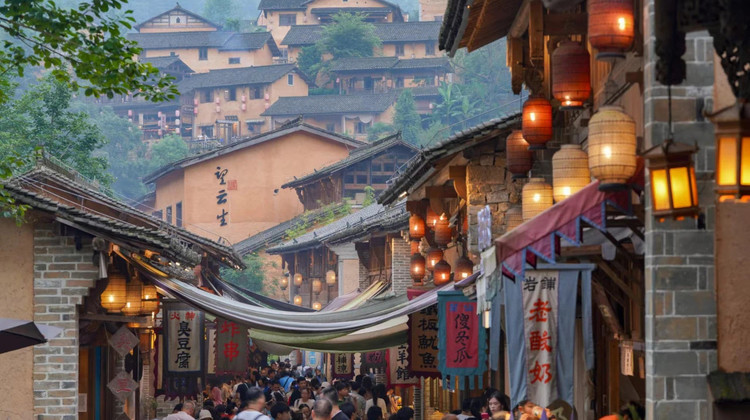 婺源天街位于江西婺源篁岭,是整个篁岭景区的中心街道,主要以徽派建筑风貌为主。沿街的一幢幢仿古建筑,明清时期的三雕工艺、彩绘、石雕、砖雕尽显眼底,青砖铺地,黛瓦覆顶,古色古香,传统的韵味十足。