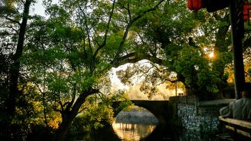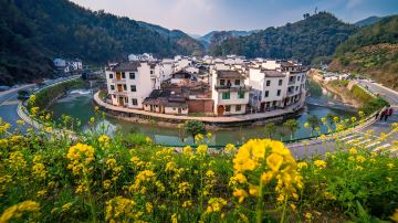 婺源月亮湾是去李坑景区的路上路过的一个小岛,多是摄影爱好者前来采风。清晨五点左右来俯瞰婺源月亮湾是美丽的,因为那时晨雾笼于水面上,白墙、黑瓦、金花、绿水在一片朦胧中更加亦幻亦真,宛如一张中国水墨山水画。