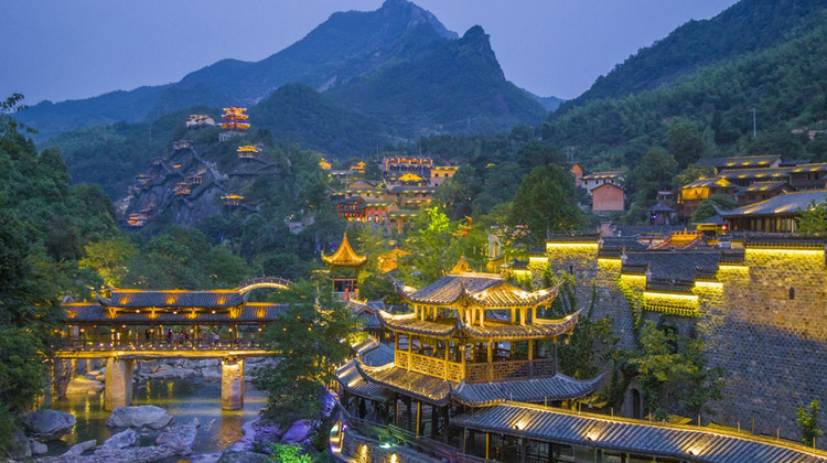望仙谷一个悬崖上的仙侠世界,青云桥、寻仙路、玉帘瀑布是观看大峡谷视野和出片的C位,看看古镇夜景,在上俯视灯火通明的仙谷,别有一番意境;大峡谷漂流是夏季玩水的好去处;住在望仙谷悬崖民宿,推窗揽月,仿佛置身仙境之中。