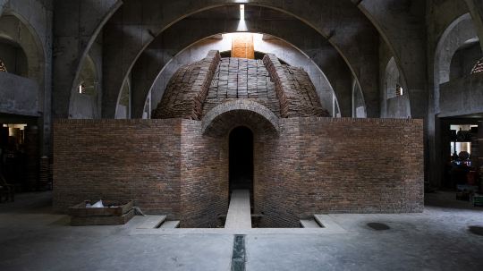 窑房大厅在烧窑时用来满窑、堆松材、点火、烧窑、开窑等,平时与侧廊二层为艺术馆作品展览空间。随着时代的变迁和传统工艺的濒临消失赋予了这座窑房特殊的文化和象征意义。这一空间如一座圣堂一般,为烧制瓷器这一行为塑造出一种神圣的仪式感。