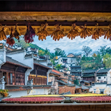 挂在山崖上的篁岭古村,地无三尺平,数百年来,村民早已习惯用平和的心态与崎岖的地形“交流”,绘就出了一处“晒秋人家”风情画。