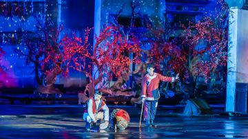在演出中,还穿插了许多具有徽州特色的民俗表演,如婺源傩舞、板凳龙、徽州鱼灯、非遗火壶、打铁花、璀璨烟花等,让观众在欣赏精彩演出的同时,也能领略到徽州丰富的文化内涵。