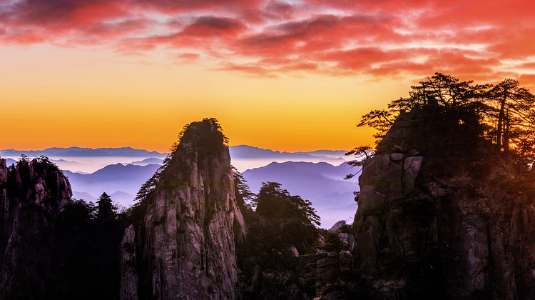 黄山风景区坐落于黄山市黄山区汤口镇境内。黄山自古以来就是中国数一数二的名山,奇松、怪石、云海、温泉被称为黄山的“四绝”。除此之外,雾凇、雪景、日出也是游人不会错过的景观,古人有“五岳归来不看山,黄山归来不看岳”的说法。