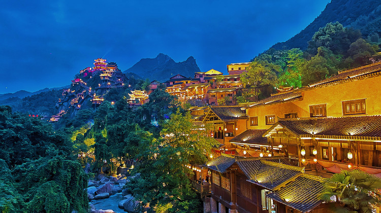 打卡望仙谷夜景,景区内有众多特色小店,非遗手工制品、年代感布景杂货铺、小吃、正餐,可自行品尝当地美食。