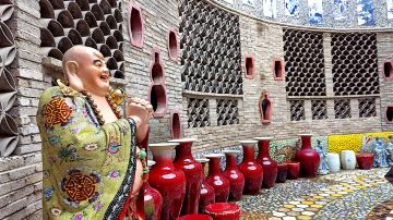 瓷宫位于景德镇浮梁县新平村,是一个以“瓷器”为材料所打造的建筑,整个瓷宫耗费了6万多件瓷器,全身镶嵌了数万件各色瓷片、瓷瓶、瓷盘,主要有景德镇四大名瓷:青花、玲珑、粉彩和颜色釉。瓷器一半嵌入墙体,摆放成各种造型,风格别出心裁,大胆粗犷。“宫殿”上还镶嵌了大量大小不一的瓷板画。装饰所用瓷器都是老人数十年积累之物,其中多为上世纪80年代柴窑烧制,不乏精品。