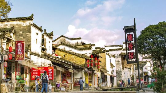 靠近景区入口的是延村,思溪村则更远些,大概要走2公里左右,可以在入口坐景区的观光电瓶车。游人通常坐车到思溪村,而后边走边逛,慢慢走回延村。两个村子间有片很大的油菜花田,但逢春季油菜花开,美不胜收。