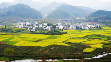 阳春三月,篁岭数万亩层层叠叠的梯田上油菜花盛开,粉红的桃花、雪白的梨花点缀其中,是一副优美的水墨油画,在这里,你可以与大自然融为一体,与花海亲密接触。