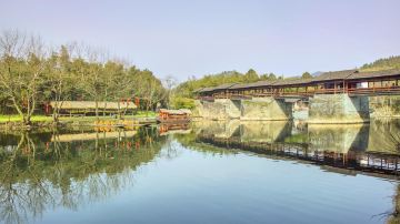 彩虹桥位于清华镇境内,始建于宋代,是古徽州的古老廊桥,也是婺源的标志之一,被媒体誉为“中国十分美丽廊桥”。岸边远观彩虹桥和水中的倒影,在周围山水映衬下显得更加生动,著名电影《闪闪的红星》也曾在此取景。桥中有石桌石凳,游人可坐在桥上稍作休憩,纵览四周风光。不过更多人会选择在岸上远观廊桥全貌,配合着旁边的村子、桥下的小溪,以及水中的竹排,拍廊桥和水中的倒影,随手一张都是大片。桥上的阁亭上面有一匾额,写着“长虹卧波”四个大字,下面的神龛内供奉着建此桥、重修此桥的先人,和上古治水的大禹。旁边的导览可让你了解关于彩虹桥的历史和建筑的特别之处。彩虹桥旁边是一条水上汀步,游人可踩着石墩过河,在水中央看廊桥的全景,很有意思。旅游旺季的时候排队过河的人非常多,只能从有水车的一端单向通行。不过既然来了,时间充裕的话,不妨不免俗套地从石墩上走一次。此外,你还可以坐上水边的小竹排徜徉江中,感觉很棒。除了廊桥本身,彩虹桥附近还有一个寺院,不过有些难找,也不属于景区管辖,一些游客还在此遇到被要求捐香火的情况,因此不太推荐专门去找。