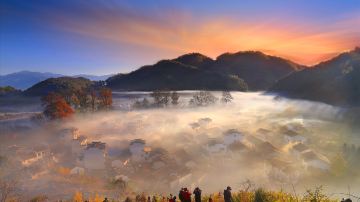 石城是一座山的称呼,在婺源县西北的古坦乡(现合并入大鄣山乡)境内,婺源旅游地图上叫石城山,山脚下就是灵岩国家森林公园。山上分布有两个村庄,分别叫程村与戴村。戴村与程村隔着一个小山坡,村后有古枫点缀,两个村庄的秋色各具特色,拍完石城的日出晨曦后可以到村里转转。