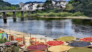 立秋一到,篁岭古村就成了一个天地晒场。来晒秋人家赏红枫,欣赏屋顶晒秋,枫林尽染,体验民风民俗,手摇风车、套南瓜等,感受晒秋人家的乡愁韵味。