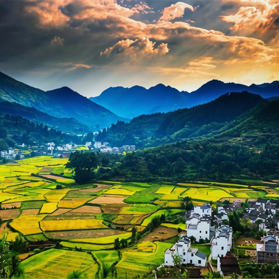 篁岭古村,属典型山居村落,周边千棵古树环绕,万亩梯田簇拥,造就了世外桃源般的山居田园生活。 这里自然环境优美,历史人文厚重,是古徽州历史文化名村。