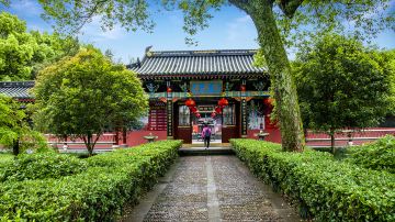 天师府位于上清镇,是历代张天师的起居之所,原建于龙虎山下,后迁于上清。张天师的名号已传到63代,是我国长的受皇帝册封的一姓嗣教,民间有“北有孔夫子,南有张天师”之说。张天师本名张道陵,据说是张良的八世孙。传说他身长九尺三寸,浓眉大脸,十分威武。汉光武年间,他出生于天目山,他母亲梦见魁星而生下了他。张道陵自幼聪慧过人,七岁就读通了老子道德经,天文地理河图洛书无不通晓。成年后又在深山中刻苦修炼,不久得道。他曾在龙虎山炼丹,三年丹成。不久后遇到神人指点,修成了高的道术,能够除魔去病,拜他为师的人竟有好几万人。张道陵就把他们组织起来,成立了道教团体。据说在东汉桓帝永寿元年的九月九日,张道陵被仙人封为正一真人,羽化登升。他所创立的道教一直传到今天,由於他规定入教者需交五斗米,因此也称“五斗米教”。后人尊他为张天师,而张天师的名号也被历代帝王特许世袭,现在的张天师已经是张道陵的第63代孙了。天师府占地5万平方米,有500多间房舍,楼台殿阁金碧辉煌,曲径回廊不计其数,府内古木参天,环境清静,风景十分优美。它既保留了中国传统的府第规格,又兼有封建衙署的某些特点,在布局上保持了鲜明的道教正一派风格。每年的10月初,这里会举行龙虎山道教文化节,游客可以观看到道教法会表演。