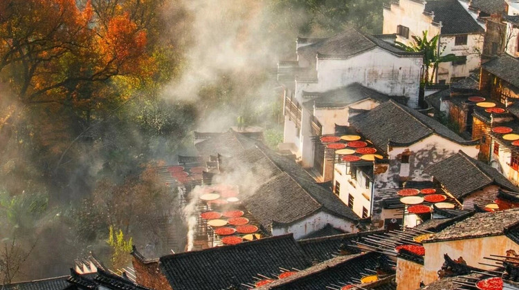 立秋一到,篁岭古村就成了一个天地晒场。来晒秋人家赏红枫,欣赏屋顶晒秋,枫林尽染,体验民风民俗,手摇风车、套南瓜等,感受晒秋人家的乡愁韵味。